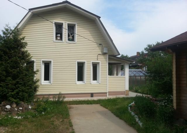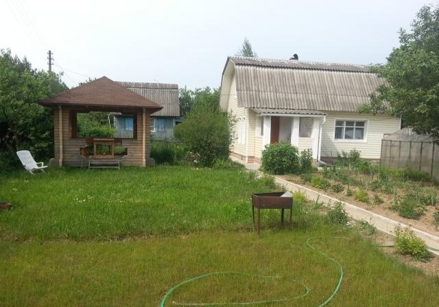 Продается 2х этажная дача п. Тучково СНТ Яблонька, общая пл. 90 кв.м., 6 соток, дом построен в 1993 году из кирпича, внутри вагонка, крыша шифер, блочный фундамент, планировка: 1эт- гостинная, кухня, большая комната, 2эт- прихожая, две комнаты, коммуникации: эл-во, вода колодец, отопление, туалет на улице, на участке беседка, баня. Сарай. Теплица, участок обработан, смородина, сливы, яблони, рядом лес, пруд