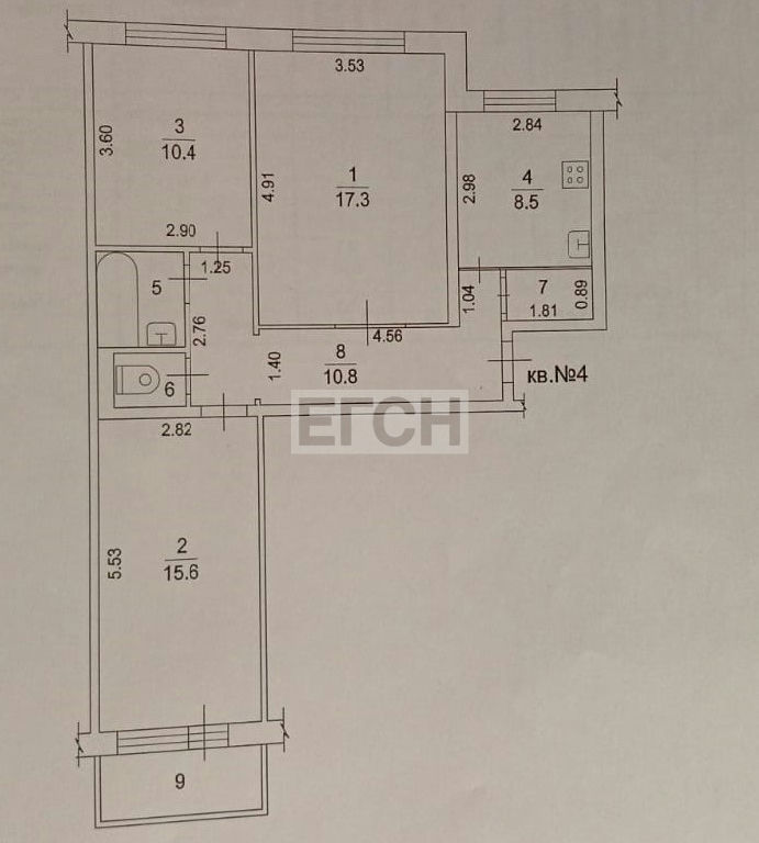 Комнаты: 17,3/15,6/10,4 м2
